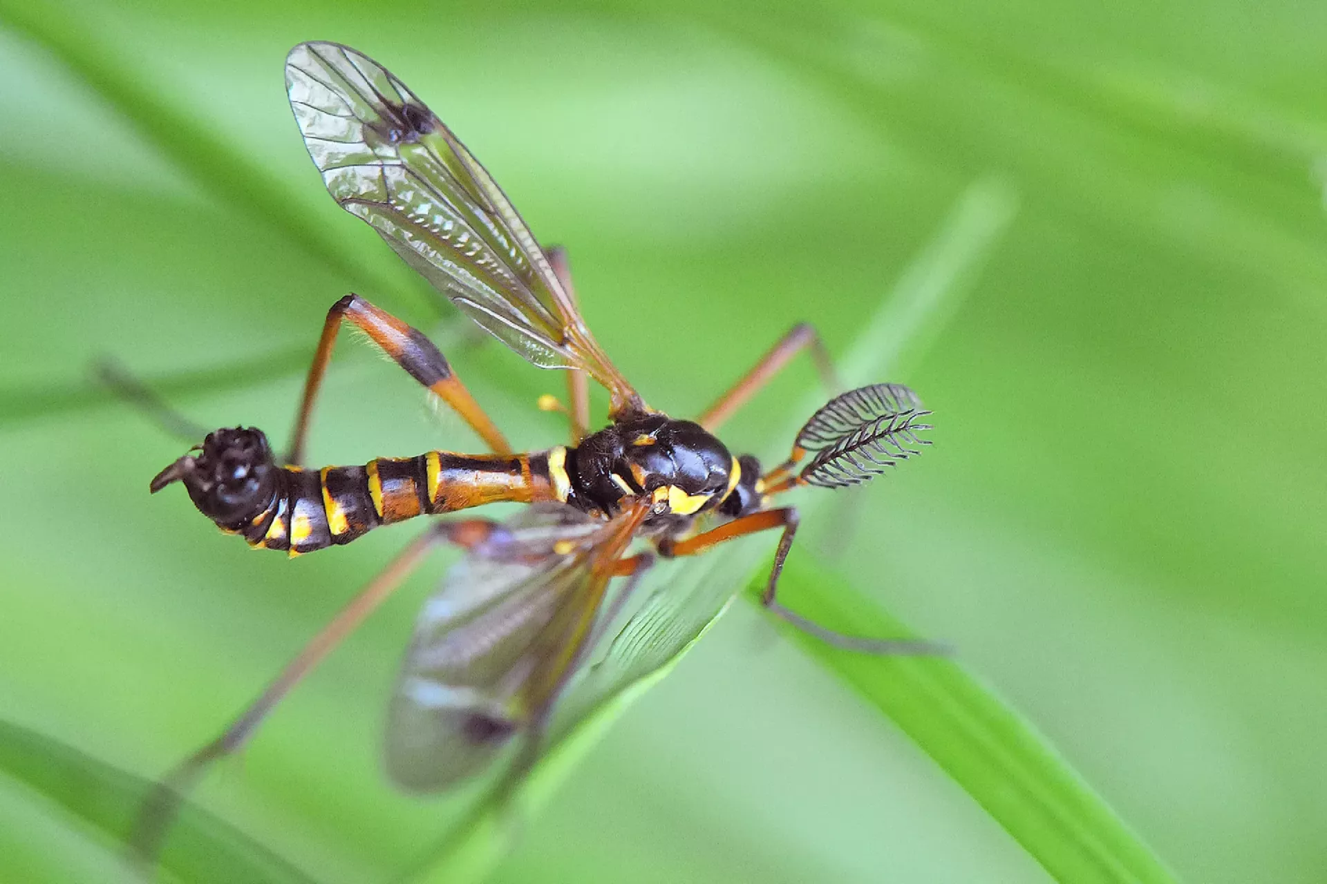 Pisano glavnikarico prepoznamo po glavnikasto razvejanih tipalkah samca.