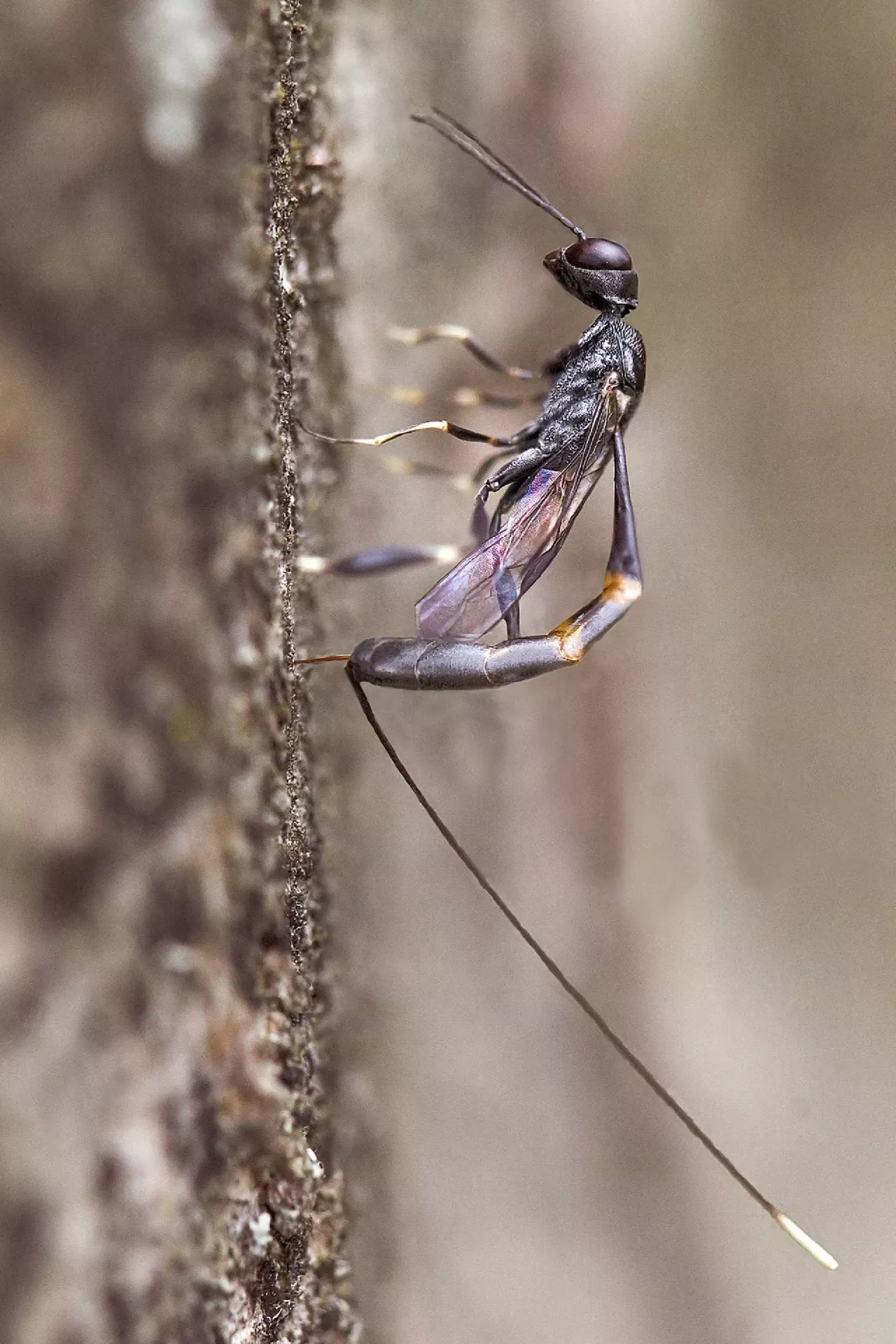Na prvi pogled deluje kot nenavadna in grozeča osa z izjemno dolgim »želom«, a v resnici gre za orjaškega najezdnika (Dolichomitus imperator), do petintrideset milimetrov velikega kožekrilca. Dolga nitasta struktura, daljša od telesa, ki izstopa iz njenega zadka, ni želo, temveč leglica. Z njo samica odlaga jajčeca globoko v les. Njena tarča so ličinke lesnih os, ki jih poišče z zelo razvitim čutilom za voh. Z leglico prodre skozi lubje, se pri tem vrti in poišče gostiteljico, da vanjo odloži jajčece. Razvijajoča se ličinka orjaškega najezdnika nato postopoma poje svojega gostitelja – hroščevo ličinko, kar vzbuja občudovanje in grozo hkrati.