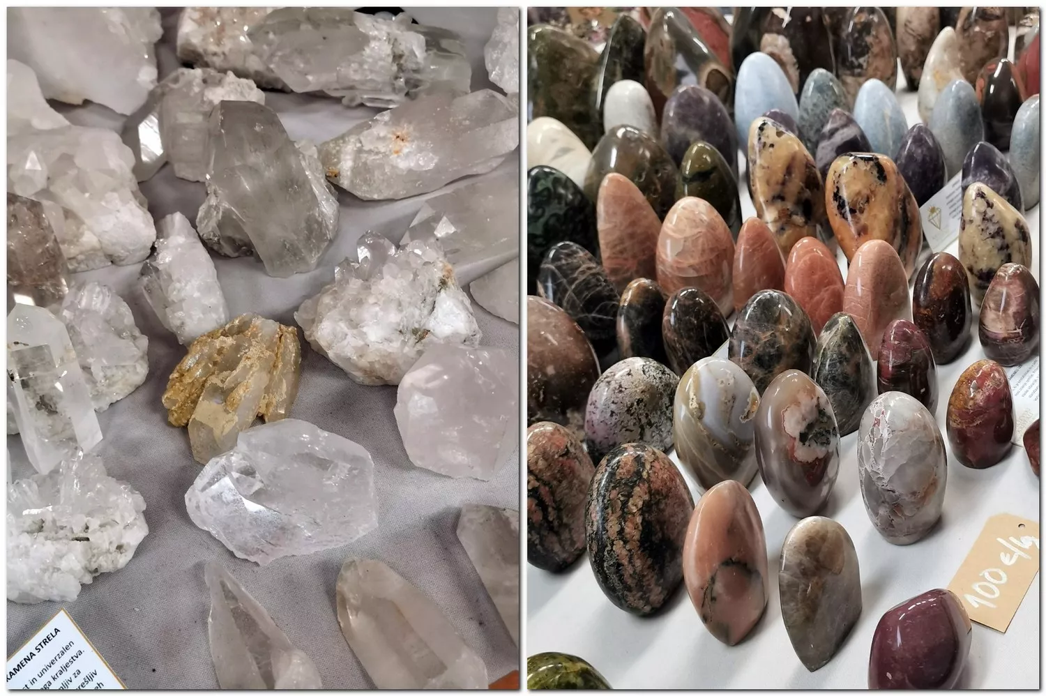 Kristali imajo stalno frekvenco. Osnova vseh kristalov je kamena strela. Njena kemična formula je SiO2. Vibrira 32.768-krat na sekundo, zato jo uporabljamo v urah, mikrofonih, v sodobni tehnologiji tiskanih vezij in v pametnih napravah. Silicijeva dolina nosi ime po siliciju, kamena strela pa je sestavljena iz silicija. Velika večina vseh drugih kristalov – od roževca, ametista, vseh jaspisov, avanturinov, ahatov – ima praktično enako kemično formulo: SiO2 plus še nekaj zraven. Ametist denimo poleg silicijevega dioksida vsebuje navadno železo, roževec ima mangan, jaspis prav tako železo … Vse izhaja iz silicija. Zakaj uporabljamo silicij v pametnih napravah? Ravno zaradi te frekvence, in zato, ker ima spomin. Kristali si stvari zapomnijo, imajo svojo stalno frekvenco. V našem telesu se frekvence porušijo in kristali začnejo vplivati na to in stanje uravnotežijo. S kristali se ne moreš predozirati. Če pogledava kozarec z vodo – vanj lahko naliješ sto litrov vode, a je bo v kozarcu še vedno samo dva decilitra. In na tak način kristali delujejo na nas. Ker imajo spomin, jih je treba očistiti …