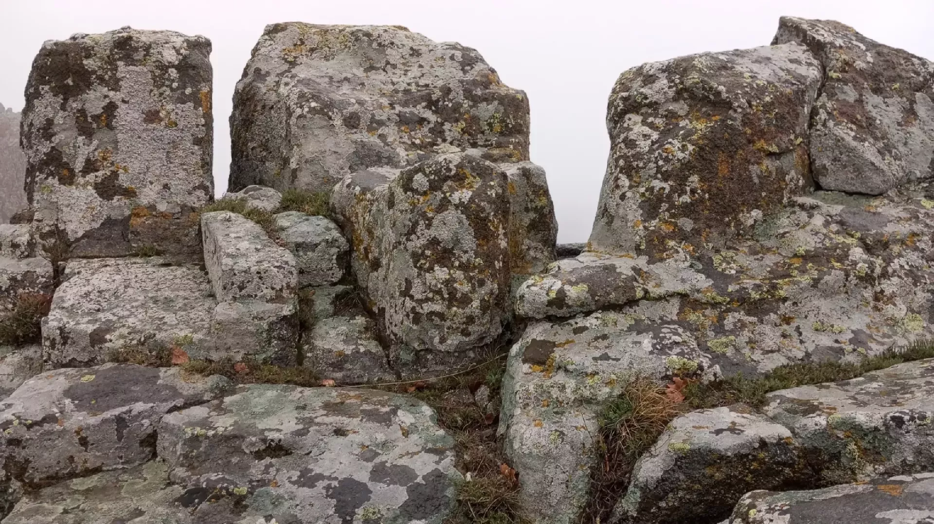 Na spodnji ploščadi so v smeri sever–jug postavljeni štirje izklesani »prestoli«. (Foto Igor Fabjan)