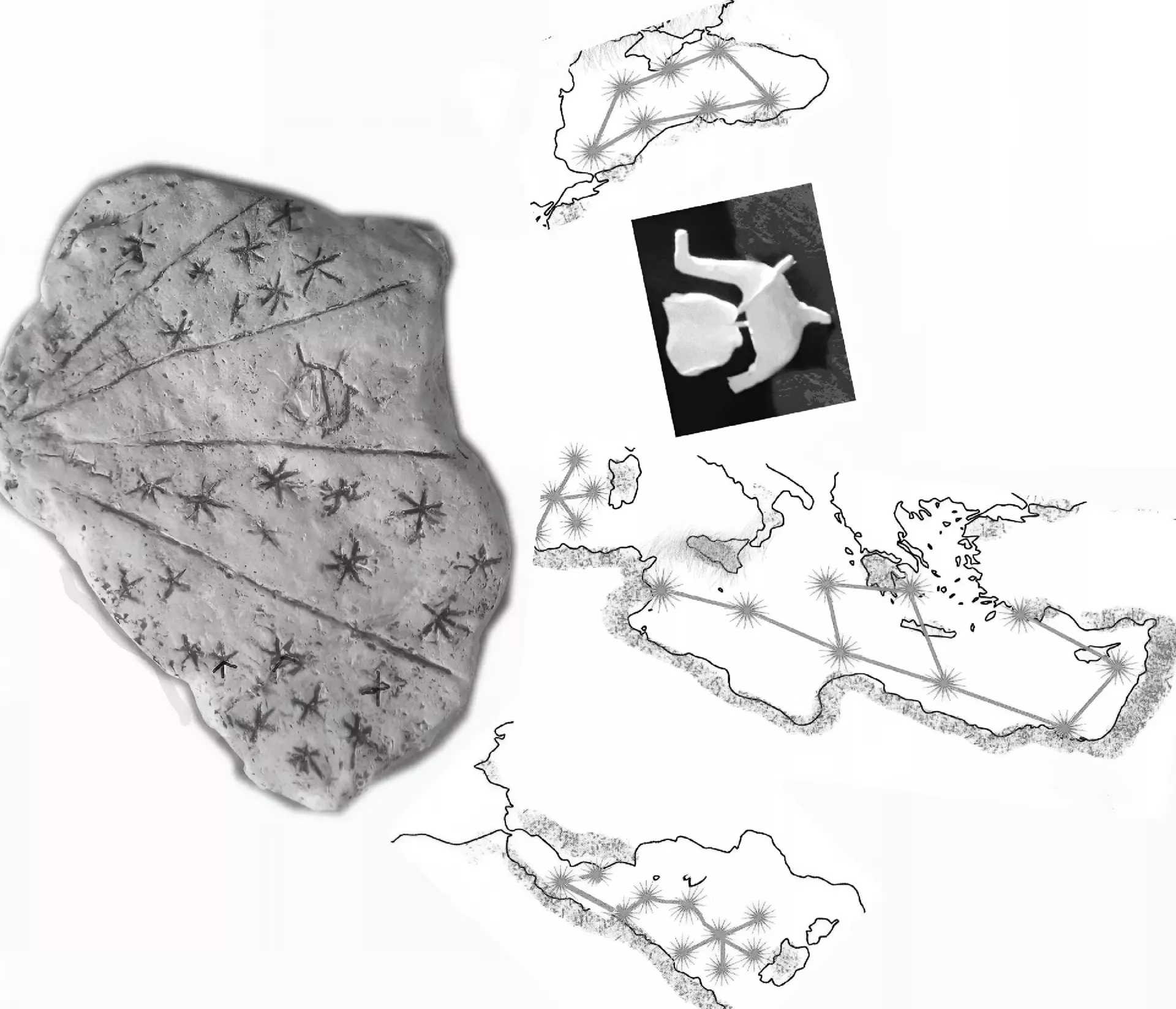 Tri sekvence na kamnu prikazujejo ozvezdja Škorpijona, Device in Leva, ki kažejo poti med Sredozemskim in Črnim morjem. Vmesna sekvenca z vgravirano »ptičjo barko« pa kaže položaj ob Malti, kjer je bil najden kamen.
