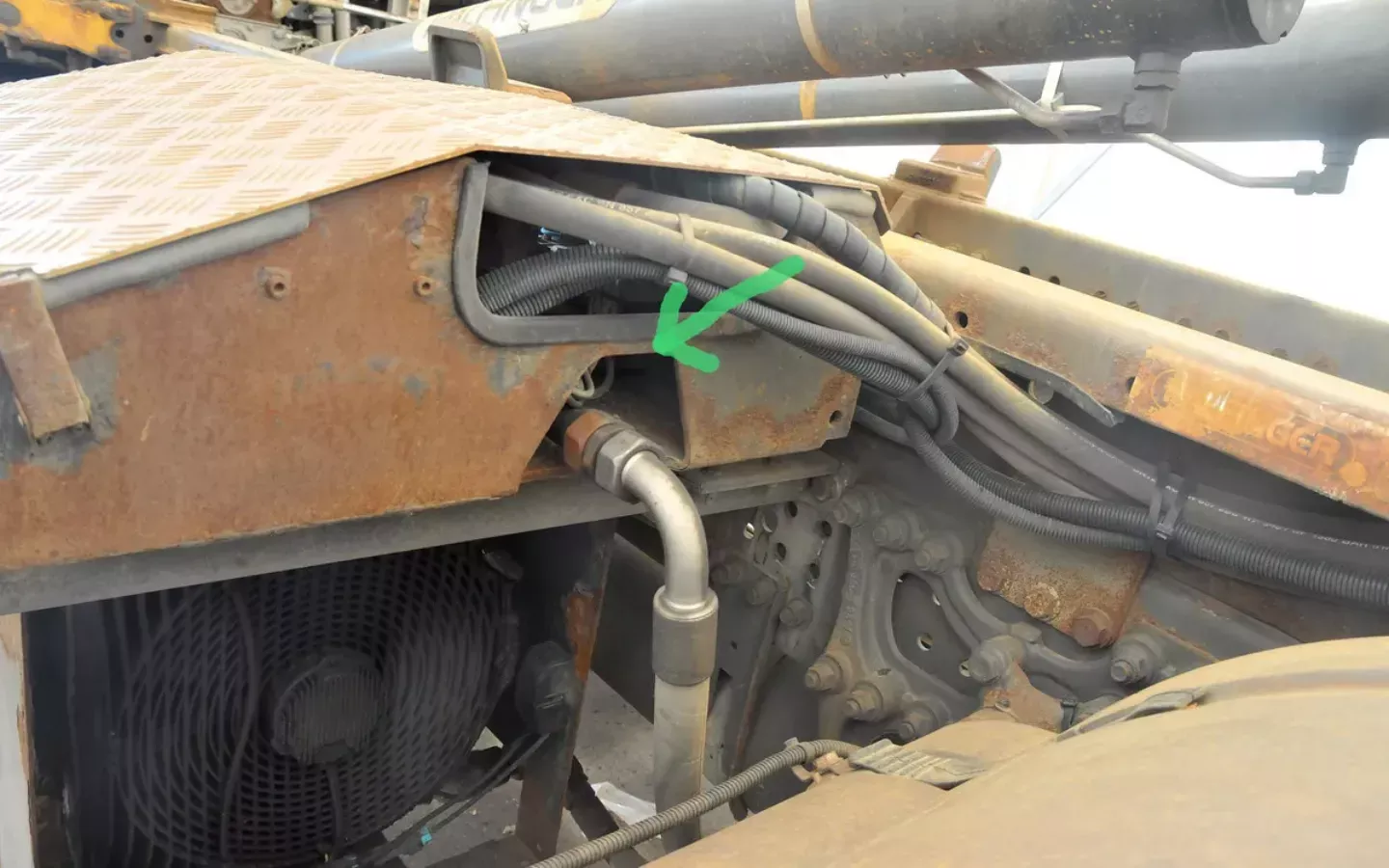 Vhod v razdelilno omarico hidravlike na podestu tovornjaka, kjer je bilo gnezdo. (Foto Boris Kozinc)